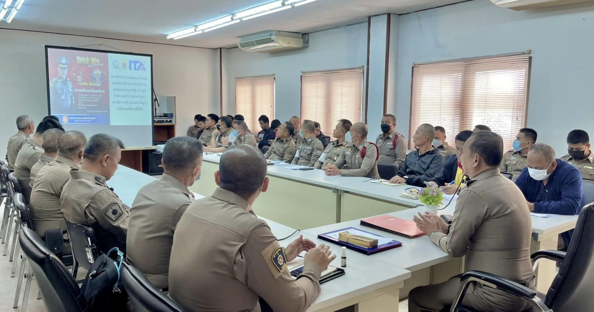 วันนี้ 25 ธ.ค. 66 เวลา10.30 น. พ.ต.อ.กนกศักดิ์ สิงห์ทอง ผกก.สภ.ทัพทัน พร้อมด้วยข้าราชการตำรวจ สภ.ทัพทันร่วม ประชุมบริหารประจำเดือน รับฟังปัญหา รับมอบนโยบายและถ่ายทอดข้อสั่งการ การประชุมบริหารสำนักงานตำรวจแห่งชาติ ครั้งที่ 9/2566 พร้อมทั้งมอบของกำนันอวยพรปีใหม่ 2567 และรับมอบเสื้อกีฬา จาก ร.ต.อ.วิชัย สะราคำ รอง สว.สส.สภ.ทัพทัน เพื่อมอบให้แก่ข้าราชการชตำรวจ สภ.ทัพทันทุกนาย เพื่อเป็นขวัญและกำลังใจในการปฏิบัติหน้าที่ต่อไป