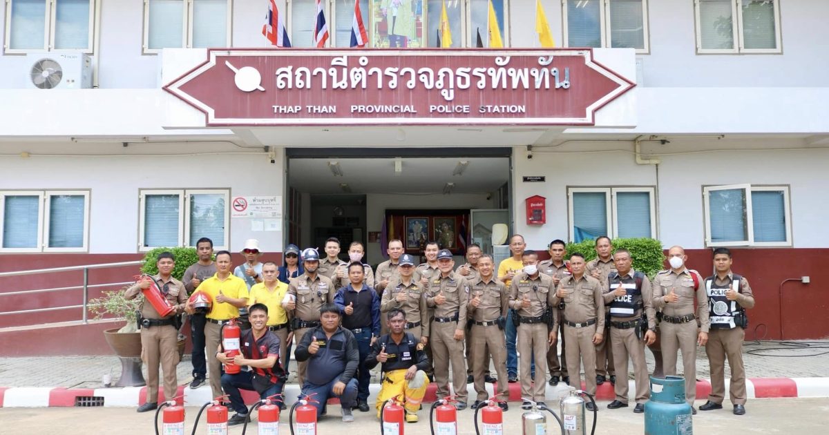 สภ.ทัพทัน ร่วมกันซ้อมแผนป้องกันและระงับเหตุเพลิงไหม้อาคาร